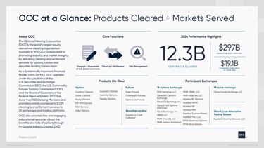To learn more about what OCC does, the markets it serves and the products it clears, download a PDF below.